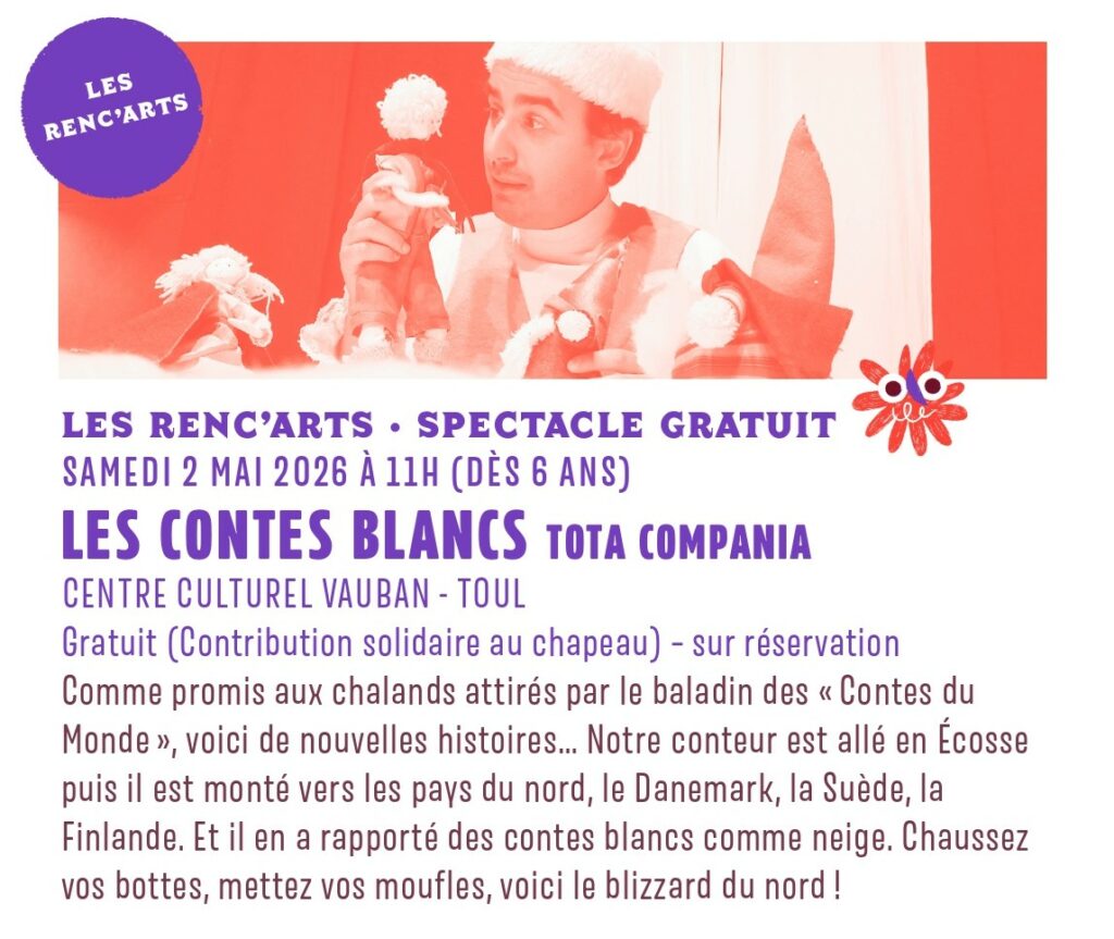 En 2026, TOTA COMPANIA s’associe à la Ville de Toul pour proposer des spectacles toute l’année, en tout public et pour les scolairesDans une démarche de défense des droits culturelsRESERVATIONS03.83.62.61.08contact@totacompania.frOu sur HELLOASSO Réservations en ligne HELLOASSO